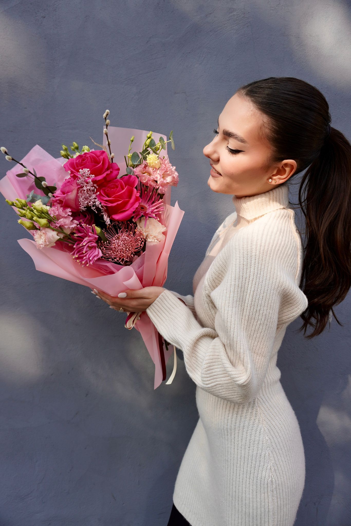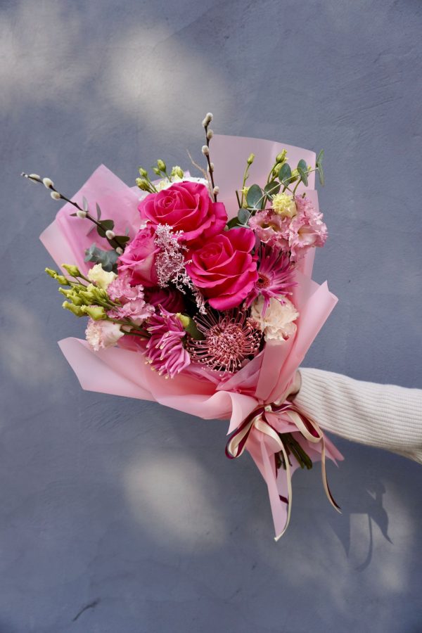 Un buchet ce emană delicatețe și rafinament, „Pink Symphony” este o compoziție florală plină de viață, creată pentru a aduce un zâmbet și o notă de eleganță oricărei zile. Ambalat într-un înveliș roz satinat și legat cu panglică dublă, acest buchet îmbină tonurile intense de roz cu accente cremoase și verzi, creând un echilibru vizual perfect.