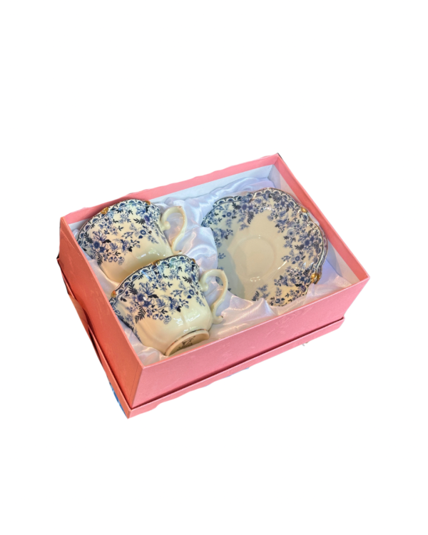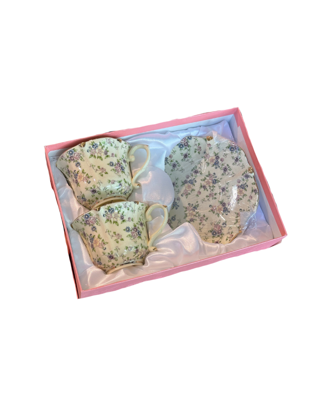 Un set de cești care aduce eleganța ceaiului de altădată în prezent. Realizat din porțelan fin, cu un model floral romantic și detalii aurii subtile, acest set conține două cești cu farfurii asortate, ambalate într-o cutie cadou satinată – gata de oferit sau de savurat în tihnă.