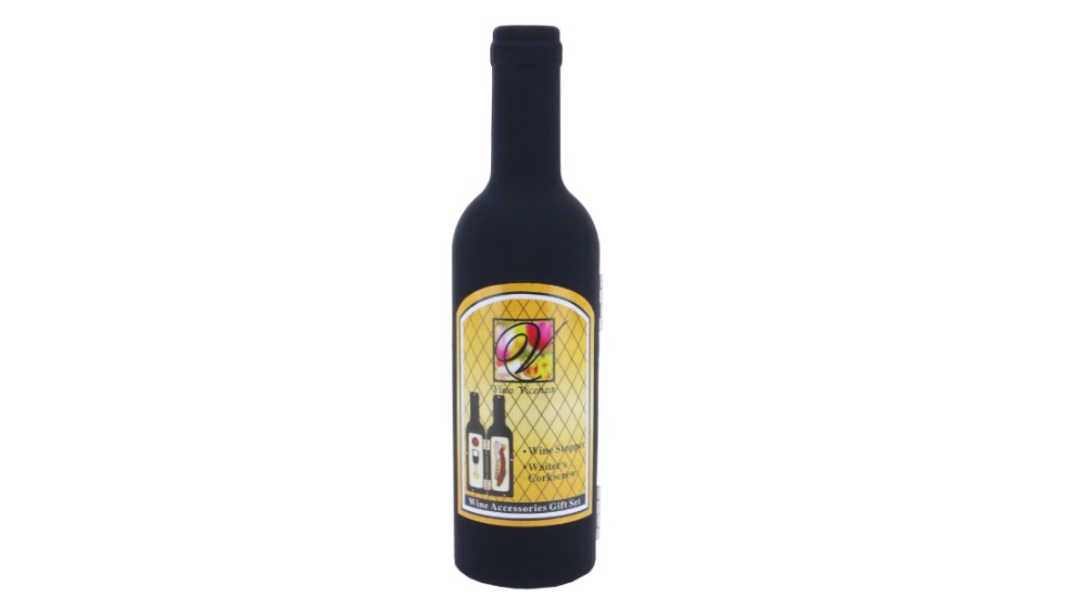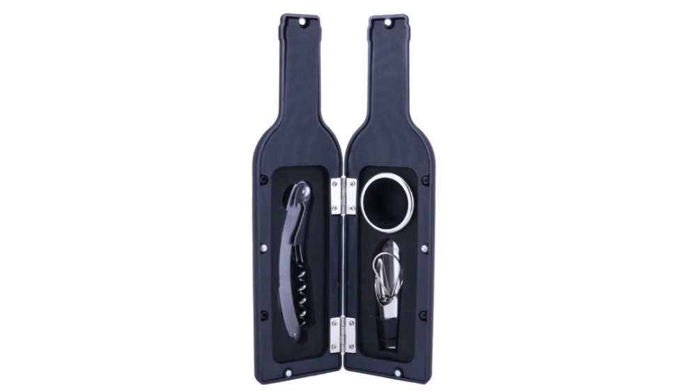 Un cadou rafinat pentru pasionații de vin, acest set de accesorii este prezentat într-o cutie originală, sub formă de sticlă de vin. Compact și elegant, setul conține toate instrumentele esențiale pentru a savura vinul în cele mai bune condiții: