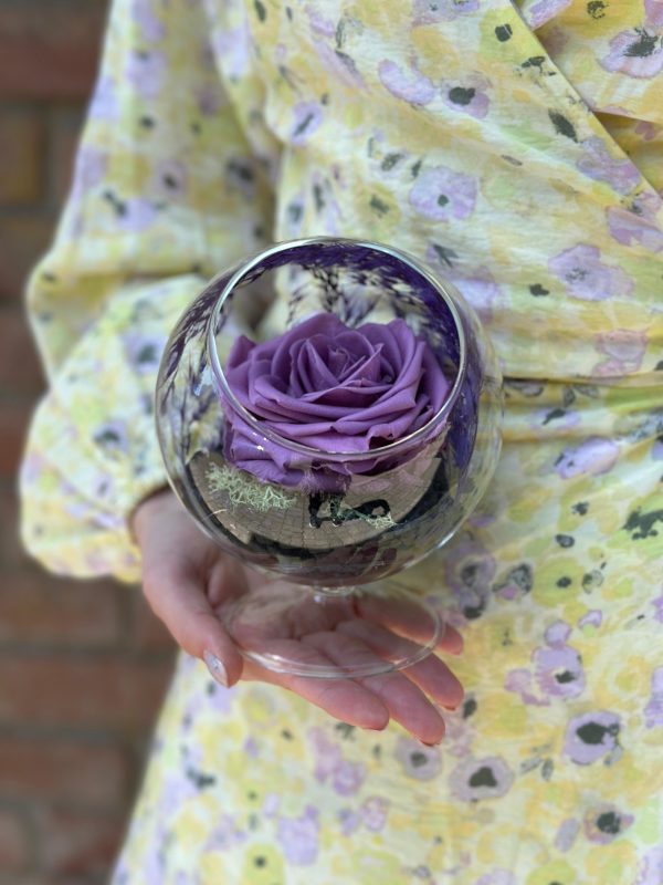 Descoperă farmecul atemporal al unui trandafir criogenat mov, perfect conservat într-o cupolă de sticlă elegantă. Realizat cu grijă și rafinament, acest trandafir natural stabilizat își păstrează frumusețea timp de ani întregi fără apă sau întreținere. Cu nuanțe delicate de lila și lavandă, trandafirul oferă un simbol autentic al iubirii durabile și rafinamentului pur.